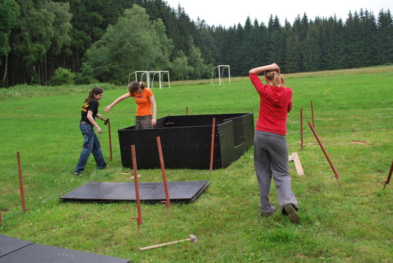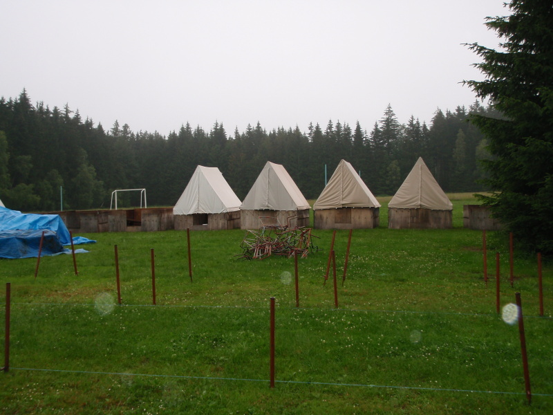 - Dole je šest fotografií z období stavby tábora.
